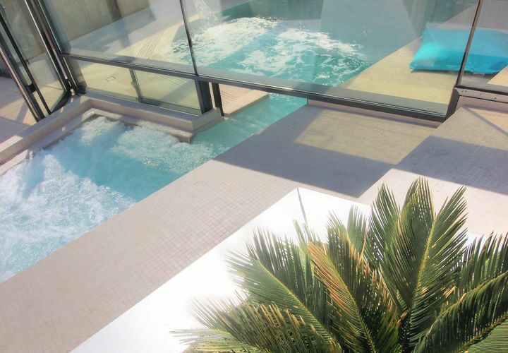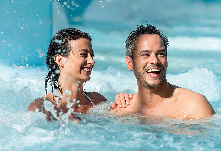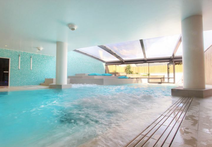 Au choix partagez un moment de complicité dans le bassin d’eau de mer chauffée à 31° avec sièges bouillonnants, lits massants, col de cygne, nage à contre-courant…