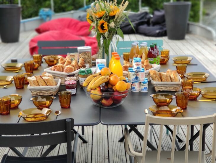 Imaginez-vous installés sur le pont pour savourer petit déjeuner ou dîner… l’occasion d’un rendez-vous unique avec la nature et les hérons qui vous saluent.