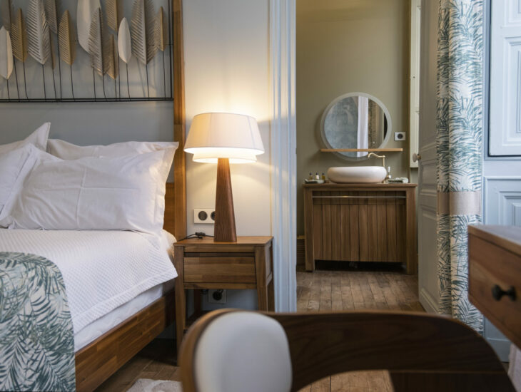 Les chambres s’appellent Escale « méditation » ou « spirituelle » et invitent à l’abandon. La décoration est résolument osée et très réussie ; les meubles anciens courtisent le design contemporain créant une jolie harmonie.