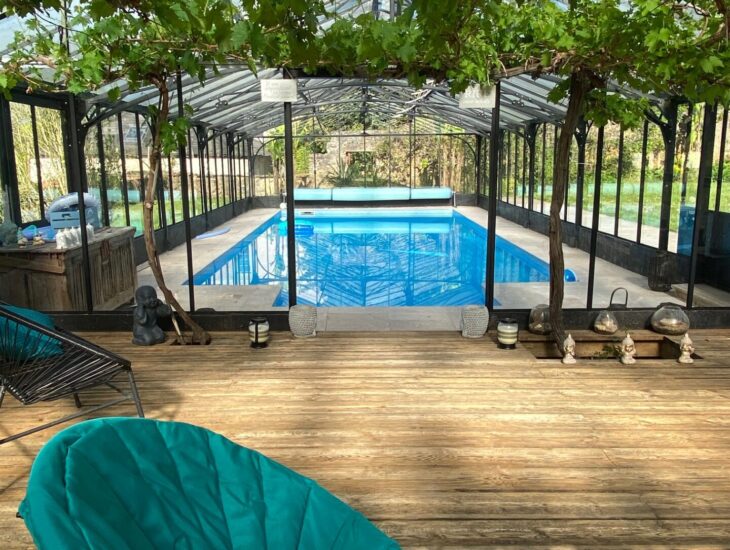 Profitez d’espaces apaisants tels que le parc de 8 hectares et la piscine chauffée et abritée par une magnifique verrière (d’avril à octobre).