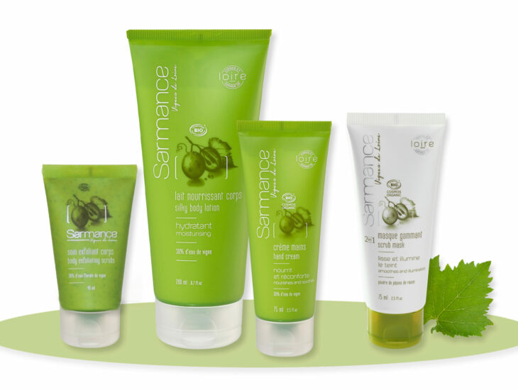 Coffret de cosmétiques bio Sarmance, issus de la recherche et de la valorisation de principes actifs des vignes de Loire.