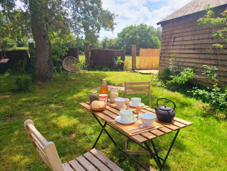 une nuit bercée par le seul bruissement des feuilles, - un panier repas et petit déjeuner concoctés en toute simplicité avec de bons produits bio et locaux…